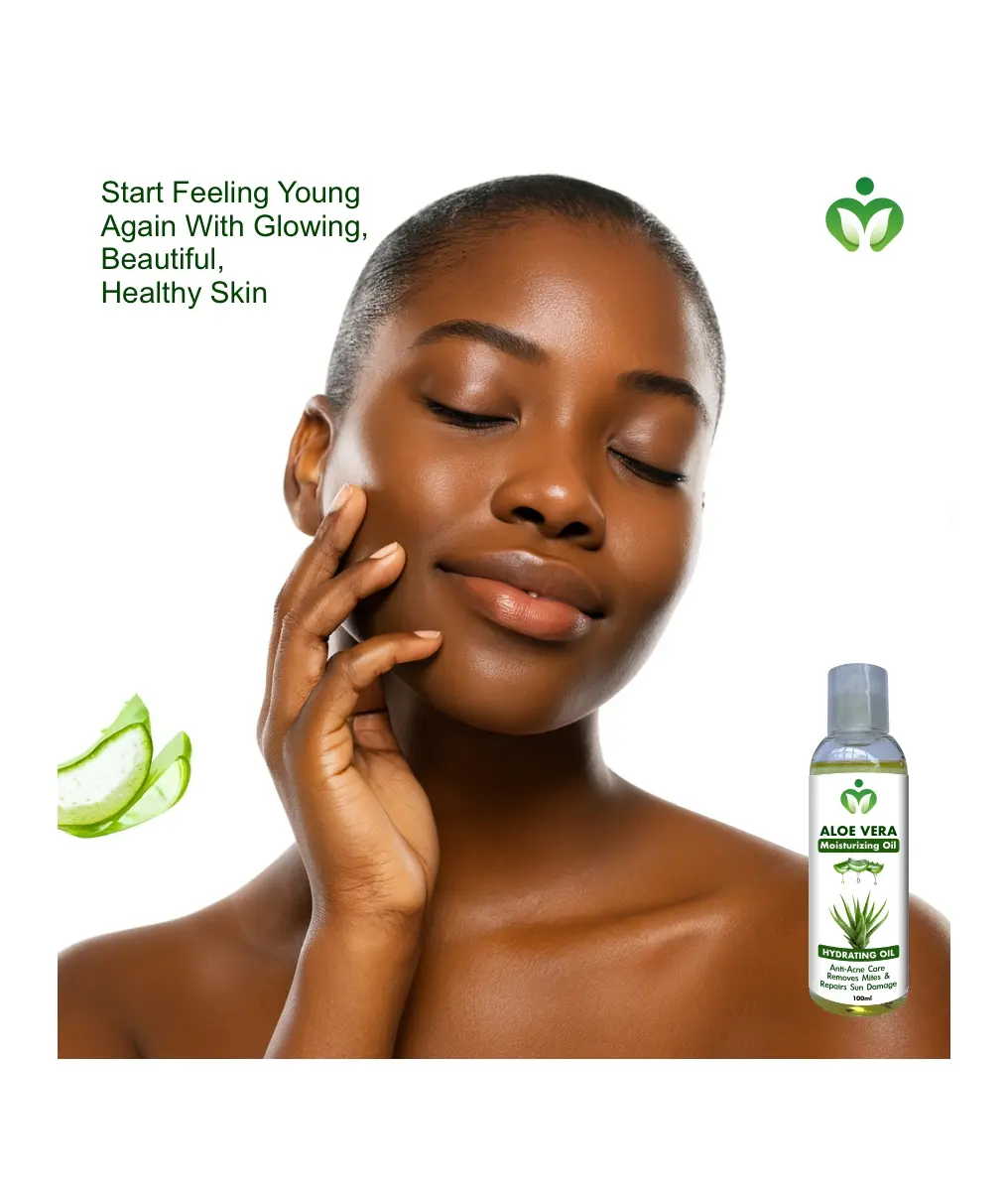 Aloe Vera Moisturizing Oil is a premium, versatile formula that hydrates, brightens, and moisturizes face and body while strengthening hair and aiding growth. Its lightweight texture deeply nourishes, evens skin tone, and restores radiance while combating acne and skin irritation with anti-inflammatory and antimicrobial properties. The oil repairs sun damage by reducing dark spots and soothing sunburn. For hair, it reduces frizz, adds shine, and repairs damage as a pre-shampoo or leave in treatment. Apply a few drops to cleansed skin or dry/damp hair, massaging gently. Suitable for all skin types, this multi-purpose oil provides comprehensive care for radiant skin and healthy hair.