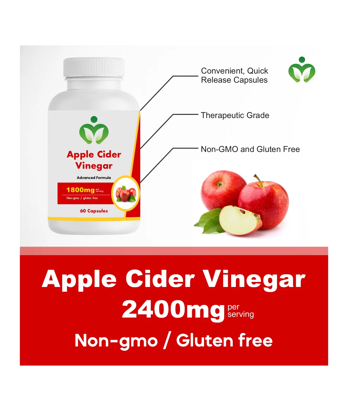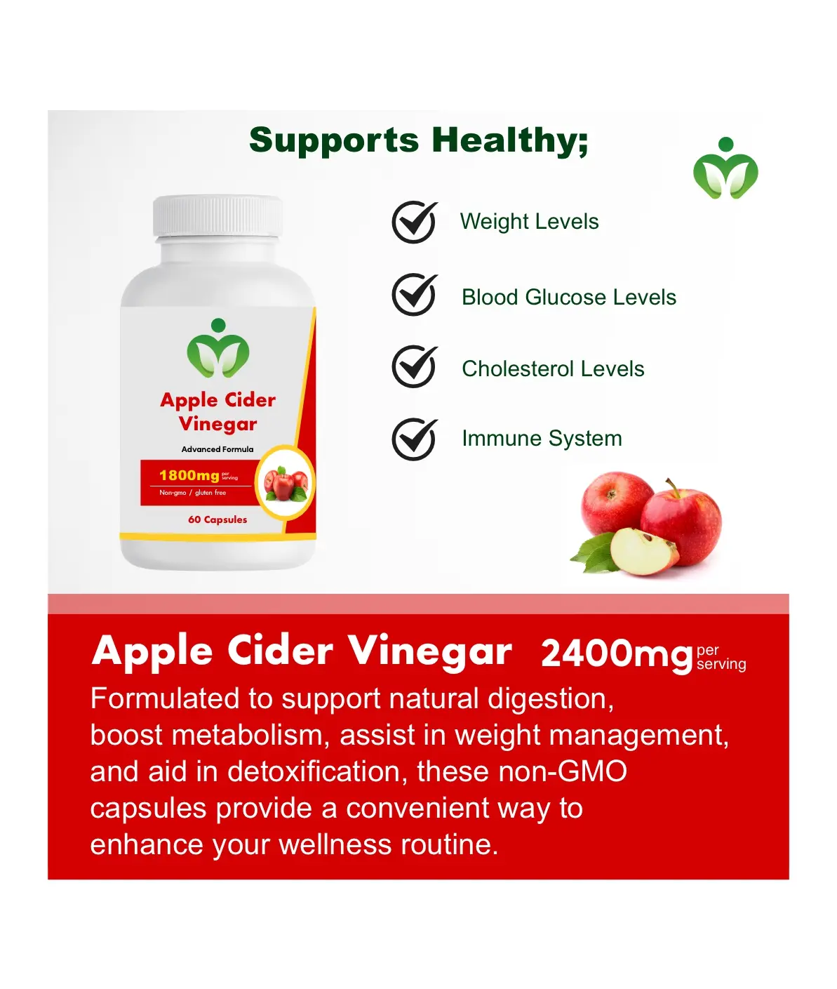 Apple Cider Vinegar Capsules support digestion, boost metabolism, aid weight management, and promote detoxification. These non-GMO capsules reduce bloating, curb appetite, and enhance calorie burning. Ideal for those seeking apple cider vinegar benefits without the strong taste.