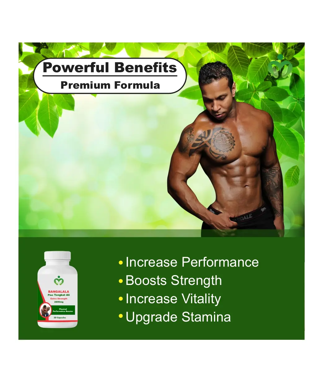 Bangalala and Tongkat Ali Blend naturally enhances male energy, endurance, stamina, strength, and sexual health. This herbal supplement boosts physical performance, supports healthy testosterone levels, and improves libido and vitality.