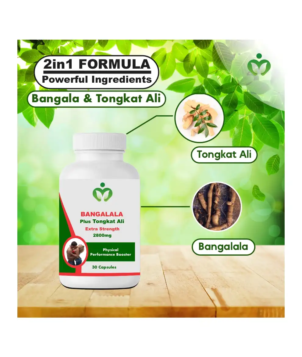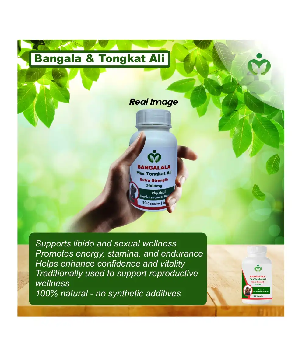 Bangalala Tongkat Ali Blend is a natural product that will help boost your sex drive, improve stamina, and enhance libido. The Bangalala Tongkat Ali is a powerful natural supplement designed to improve male sexual health and vitality. By combining the strength of Bangalala and Tongkat Ali, this blend promotes overall vitality, improves physical performance, and supports reproductive well being. Known for their performance boosting properties, these herbs provide sustained energy during physical activities, especially in sexual performance. This supplement (Bangalala Tongkat Ali Blend) is carefully crafted with 100% natural ingredients, ensuring safe and effective results without the use of synthetic additives. It is ideal for men seeking to improve their endurance, libido, and overall sexual satisfaction, helping to unlock peak performance in intimate moments. Additionally, the blend promotes better pleasure, stronger erections, and enhanced satisfaction for both partners.