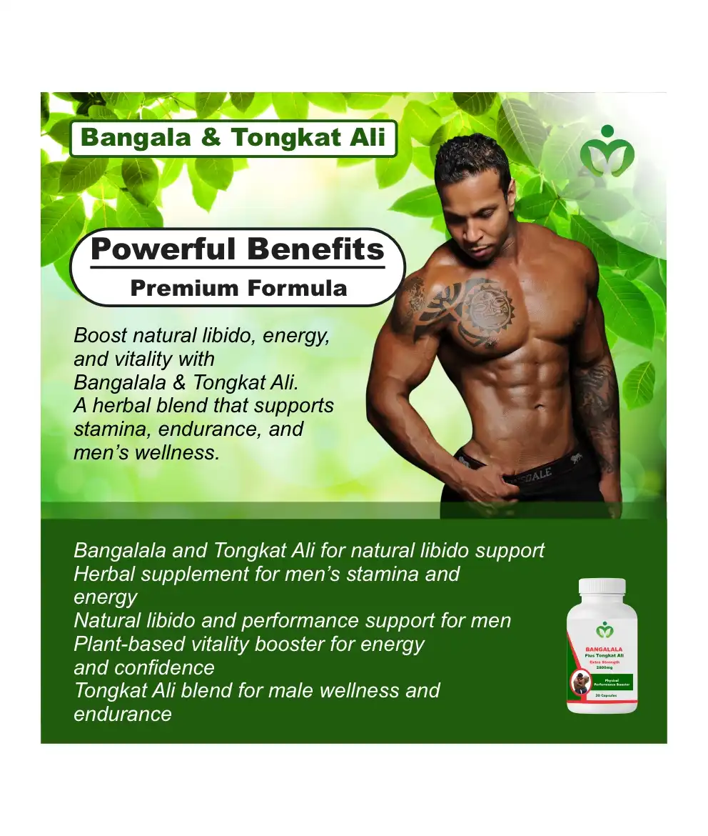 The Bangalala Tongkat Ali Blend is formulated from traditionally used botanical extracts known to support male vitality, stamina, and overall sexual wellness. These herbs are believed to help the body naturally maintain healthy testosterone levels, increase energy, and improve endurance during physical and intimate activities. This supplement is suitable for men looking to enhance performance and confidence in a natural way, without synthetic stimulants or artificial additives. Individual results may vary depending on lifestyle, diet, and consistency of use. For optimal benefits, take consistently and maintain a healthy routine that includes proper hydration, adequate sleep, and balanced nutrition. Store in a cool, dry place away from direct sunlight to preserve freshness and potency.