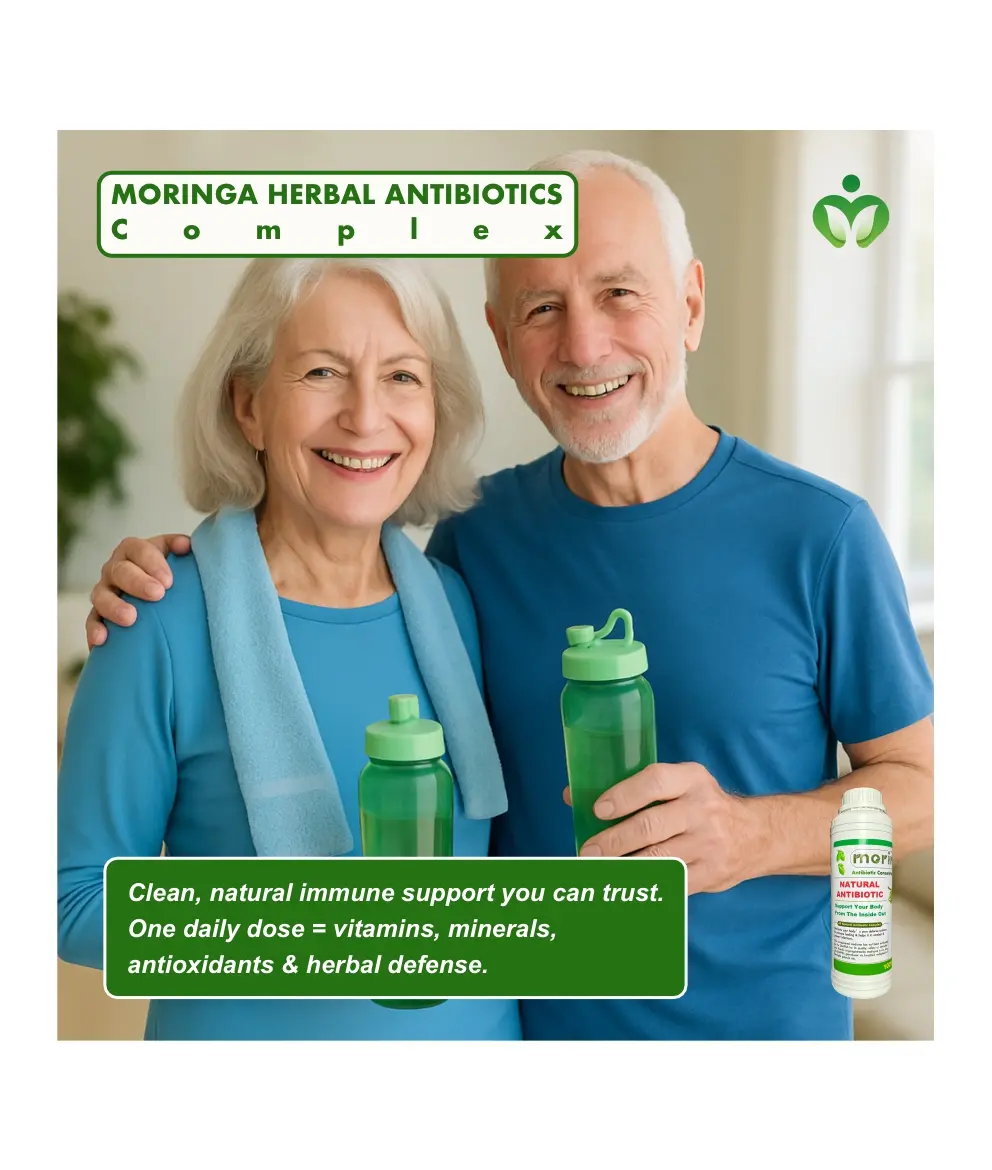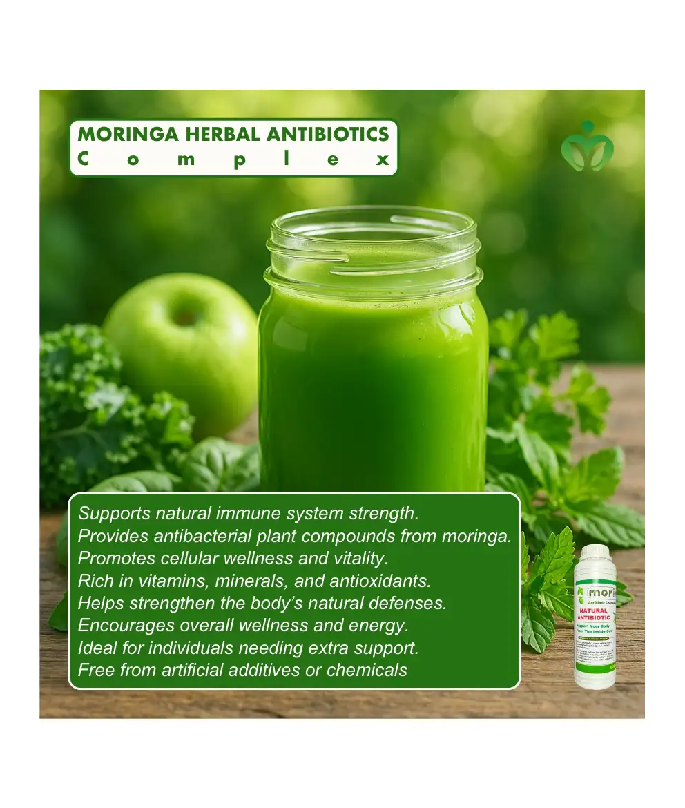 Moringa Herbal Antibiotics Complex is a potent herbal formula derived from nutrient-rich moringa, designed to effectively treat bacterial infections and support immune health. Its antibacterial properties combat harmful bacteria while vitamins, minerals, and antioxidants strengthen the body’s defenses, prevent infection spread, and reduce complications. Ideal for immunocompromised patients or those with chronic conditions, it promotes speedy recovery and cellular repair. Take a quarter to half a glass daily. Mix with water or juice. Consult a healthcare provider before use if pregnant, nursing, or on medication. A safe, natural alternative to synthetic antibiotics for comprehensive wellness support.