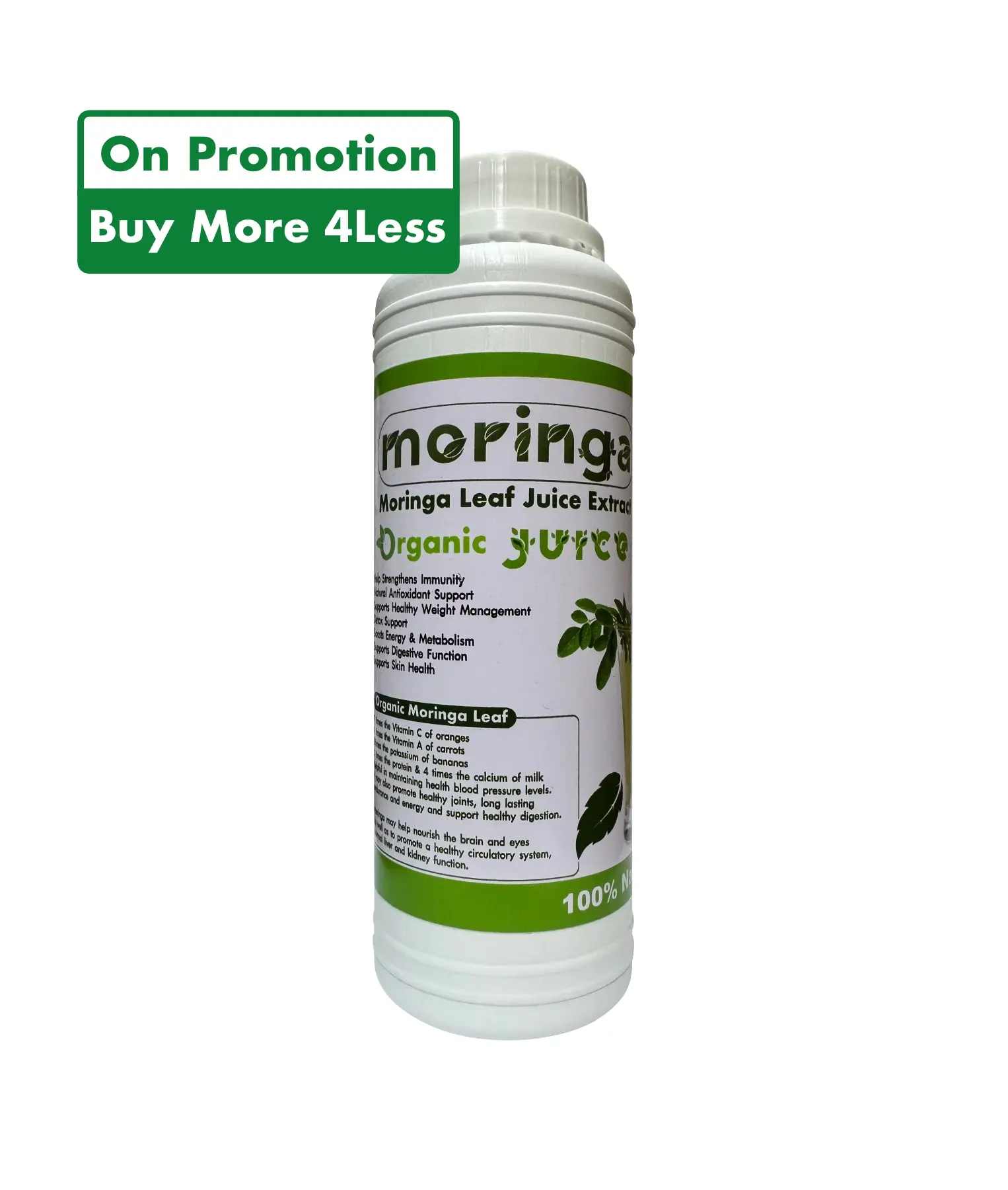 PriceMoringa Organic Juice Complex is an all-natural multivitamin super juice made from organic moringa leaves. It enhances energy and metabolism with B vitamins and reduces inflammation with antioxidants like quercetin. It supports cardiovascular health, skin vitality, and overall wellness, making it a nutrient-dense superfood for vibrant health.