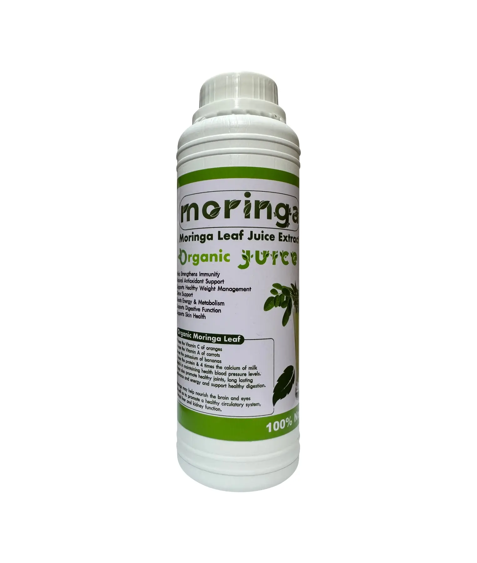 Moringa Organic Juice Complex is an all-natural multivitamin super juice crafted from premium organic moringa leaves to deliver comprehensive health benefits. This potent concentrate boosts immunity with vitamins A, C, E, zinc, and iron; enhances energy through B vitamins that optimize metabolic conversion; and accelerates metabolism for improved weight management. Rich in antioxidants like quercetin and chlorogenic acid, it combats oxidative stress, reduces inflammation, and supports cellular health. The 100% organic formula, free from synthetic additives, provides a convenient, delicious way to promote cardiovascular wellness, skin vitality, and overall well-being. For optimal results, Take a quarter to half a glass three times daily, consistently, and consult a healthcare provider if pregnant, nursing, or on medication. Embrace this nutrient-dense superfood for a vibrant, healthier lifestyle.