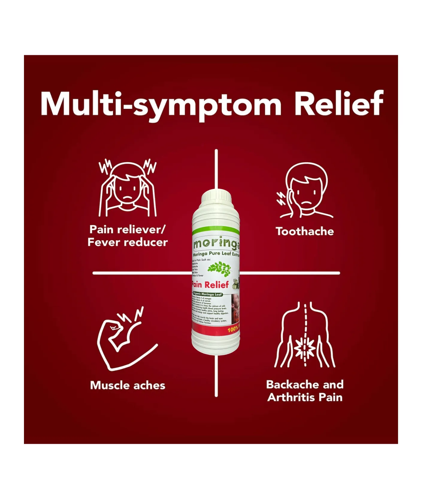 Moringa Pain Relief Complex offers a comprehensive natural solution for pain management through its potent blend of moringa and complementary herbs. This advanced formula effectively alleviates fever, muscle pain, back discomfort, joint inflammation, headaches, and toothaches by harnessing anti inflammatory, analgesic, and antipyretic properties. The concentrate reduces inflammation, soothes sore tissues, promotes healing, and provides lasting relief without artificial additives. For optimal results, Take a quarter to half a glass three times daily, consistently, and consult a healthcare provider if pregnant, nursing, or on medication. Embrace this safe, herbal approach to pain relief for improved mobility and enhanced well-being.
