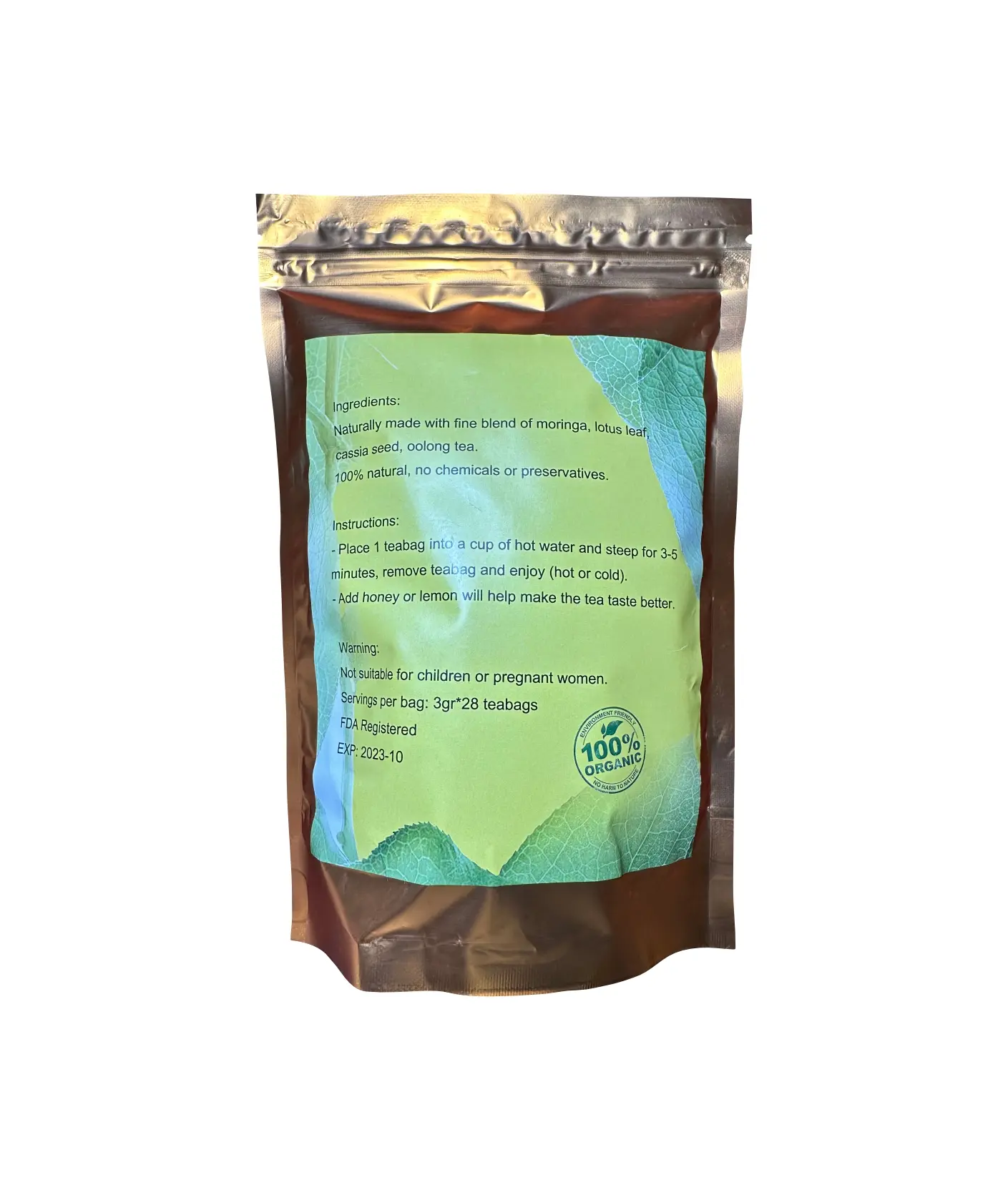 Organic Flat Tummy Tea supports digestion, reduces bloating, and aids stomach fat loss with organic moringa, lotus leaf, cassia seed, and oolong tea. This natural blend suppresses appetite, boosts metabolism, and reduces water retention, supporting overall wellness and weight management.