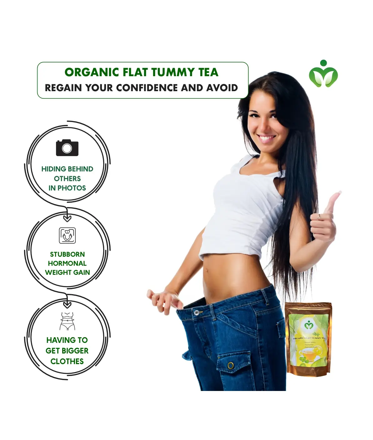 Organic Flat Tummy Tea is a premium herbal blend designed to support digestion, reduce bloating, and promote stomach fat loss. Formulated with organic moringa, lotus leaf, cassia seed, and oolong tea, it enhances metabolism, suppresses appetite, and aids in water retention reduction. This natural belly fat burner helps break down food efficiently, curb cravings, and support weight management. Steep one tea bag in hot water for 5–7 minutes and enjoy 1–2 cups daily before meals. Reuse each tea bag twice and for maximum benefits take tea 3 times a day. Ideal for those seeking a flatter stomach and improved digestive wellness through organic, additive-free ingredients.