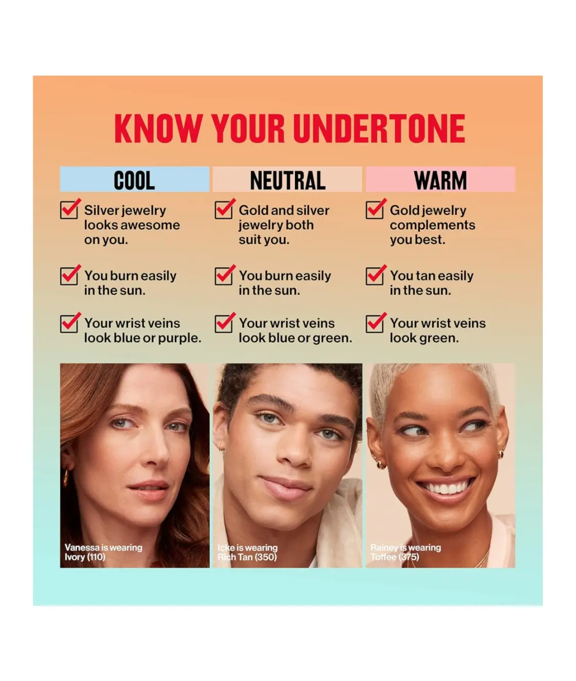 Color | Buff (002), Caramel (011), Medium Beige (006), Natural Beige (005), Natural Tan (009), Nude (003), Sand Beige (004), Toast (010), True Beige (008) |