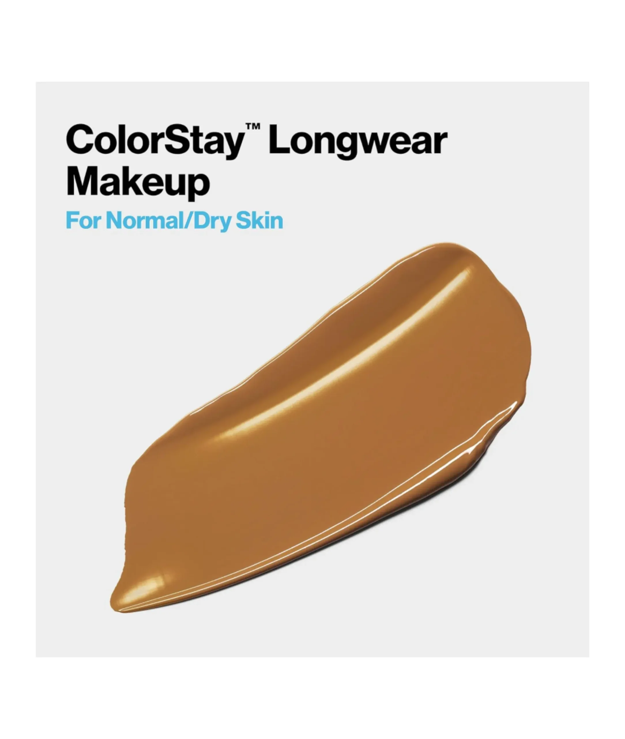 Revlon ColorStay Longwear Makeup for Normal and Dry Skin is a liquid foundation offering medium-to-full coverage with a soft matte finish and SPF 20 protection. Formulated with hyaluronic acid, it boosts hydration by over 120% while providing up to 24 hours of budge-proof, transfer-resistant wear. Ideal for normal to dry skin types, this fragrance-free, oil-free foundation resists heat, humidity, and masks without fading or creasing. Available in a diverse shade range, it ensures a seamless match for all skin tones. Apply to cleansed, moisturized skin for a flawless, radiant complexion that lasts all day.