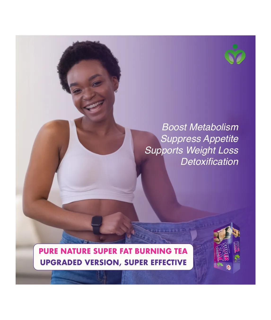 Super Fat Burning Tea is a 100% natural slimming tea that supports weight management and appetite control. It boosts metabolism, suppresses cravings, and promotes fullness. This detoxifying tea also aids digestion and reduces bloating. Drink 1–2 cups daily before meals. Free from artificial additives.
