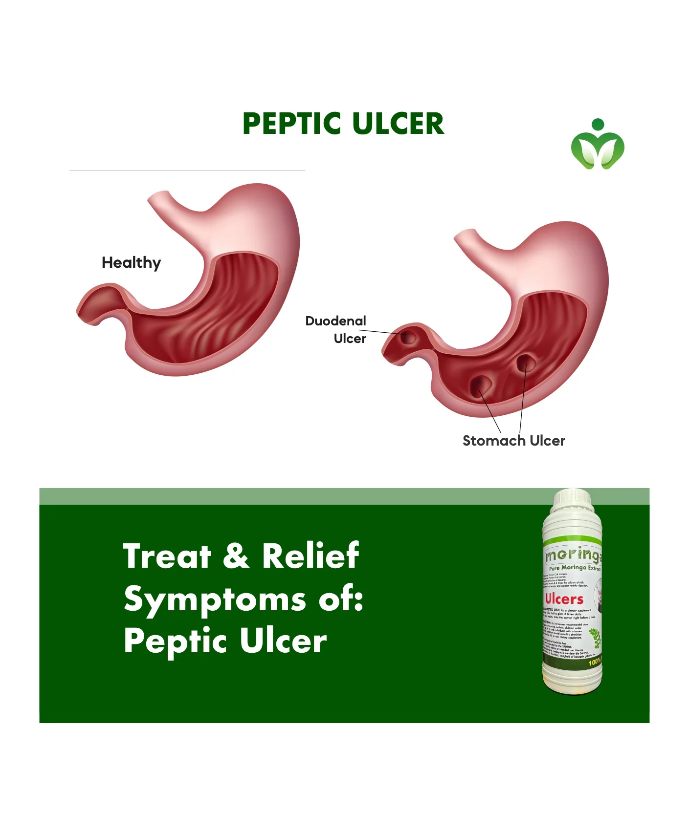 Moringa Ulcer Relief Complex naturally relieves gastric ulcers, acid reflux, heartburn, and stomach discomfort. It regulates gastric acid, soothes inflammation, and promotes digestive healing. Ideal for long-term digestive wellness.