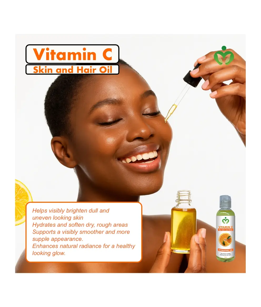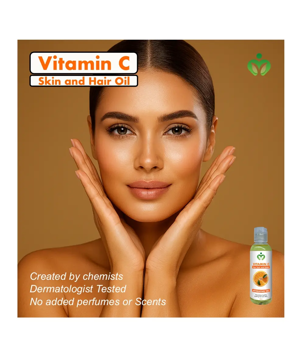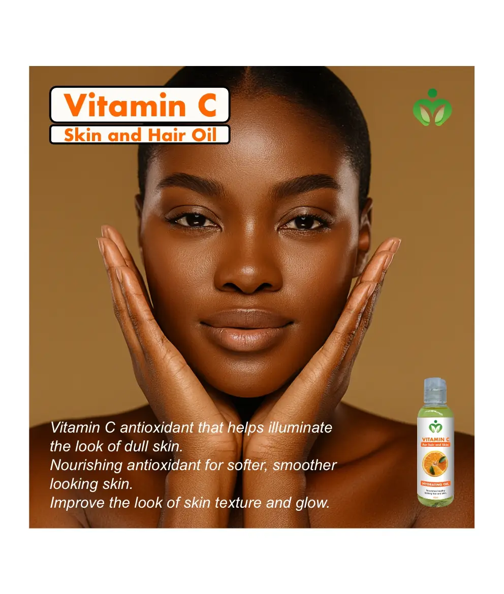 Vitamin C Skin and Hair Oil is an advanced moisturizing formula for anti-aging care that helps reduce dark spots and combat dryness while imparting a radiant glow to the skin. It delivers deep hydration for a soft, smooth complexion and also works to promote strong, shiny, and silky hair. This versatile, nourishing oil supports overall hair rejuvenation and vitality, making it a comprehensive beauty treatment.