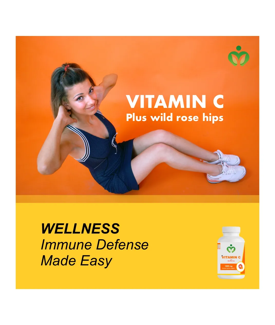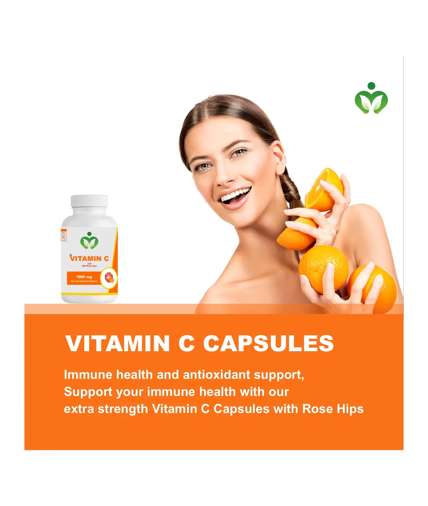 Vitamin C Capsules with Wild Rose Hips provide extra-strength immune support through a potent blend of ascorbic acid and natural rose hips. This high-potency formula enhances antioxidant protection, reduces oxidative stress, and promotes collagen production for improved skin health and elasticity. The inclusion of wild rose hips boosts Vitamin C absorption and offers additional bioflavonoids for increased efficacy. Ideal for daily use, these capsules help shorten cold duration, support recovery, and strengthen overall immunity. Take one capsule daily with water, preferably with a meal. Consult a healthcare provider before use if pregnant, nursing, or on medication. A convenient, powerful supplement for sustained wellness and vitality.